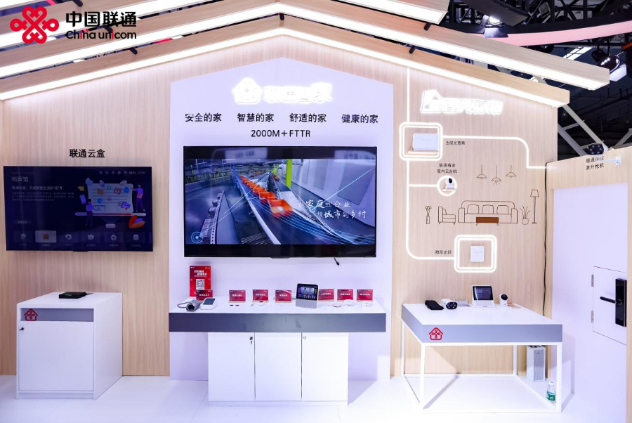 中国联通智家展区通过模拟家庭场景,构筑了“安全的家、智慧的家、舒适的家、健康的家”,致力于为家庭用户创造无限可能的智慧生活。联通智家基于全屋光宽带高品质的家庭网络底座,将联通基础通信服务与家庭应用及泛智能终端有机结合,实现了家庭业务的数字化、智能化、生态化转型。