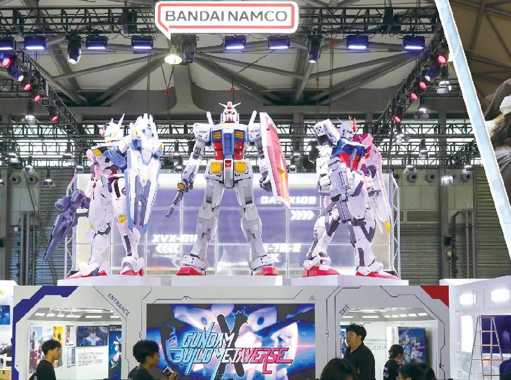 高达数米的机器人站在展台之上,俯视着川流不息的人群。作为机甲动画系列作品,高达不断推陈出新,至今仍持续推出新作品。今年恰逢《机动战士高达seed》20周年,观众可以在高达展示区观赏精品模型、体验组装乐趣、试玩游戏。在旁边的“一番赏”潮玩展区,不仅可以看到《龙珠》《航海王》等知名IP的周边,还有《间谍过家家》《崩坏3rd》《流浪地球2》《圣斗士星矢》《仙剑奇侠传》《宝可梦》的模型及手办。
