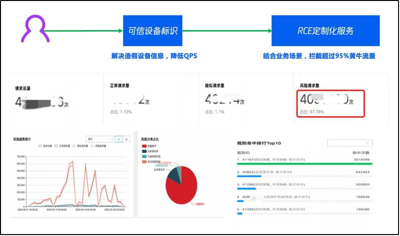 据张鸿运介绍,腾讯安全文旅解决方案可以帮助景区构建起多层防护,在200毫秒内全面检测和拦截黄牛刷票行为,实现快速、实时且无感知的防护。
