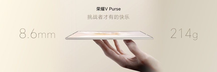 外折的优势在于拥有环抱效果的外屏,据悉,荣耀V Purse机身85%以上的空间都是屏幕,独特的硬件结构能够带来更多想象和创新空间,帮助消费者更好地沟通展示自我,并实现更多交互的可能性。