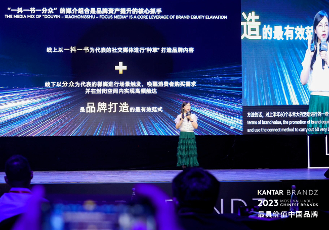凯度集团大中华区CEO暨凯度BrandZ全球主席王幸分享了品牌建设的四条经验,她在提出“打造价值感”“小赛道蕴含大机会”“中国品牌全球化”的同时,更指出了媒介投放的重要性,表示“一抖一书一分众”的媒介组合是品牌资产提升的核心抓手,是品牌打造的范式。