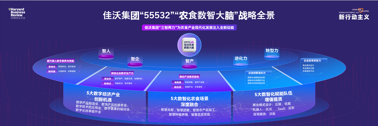 佳沃集团打造了“农食数智大脑”产业战略,即锚定5个数字经济的产业机遇,驱动5大数智化农食场景深度融合,打造5大专业高效的数智化赋能团队,实现智人、智企、智产,以及企业创新进化力与变革转型力全面提升。