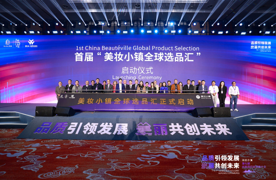 大会现场,众多嘉宾参与及见证首届“美妆小镇全球选品汇”启动仪式。携手促进中国妆全球化发展,共享美丽新机遇。