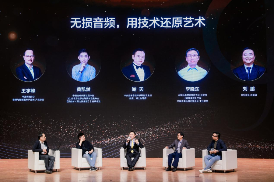 会上,华为终端BG音频与智能配件产品线总裁刘东方就华为全新一代声学旗舰华为FreeBuds Pro 3背后的全链路自研创新技术成果与现场专家与嘉宾交流,并围绕“无损音频,用技术还原艺术”主题进行现场讨论。