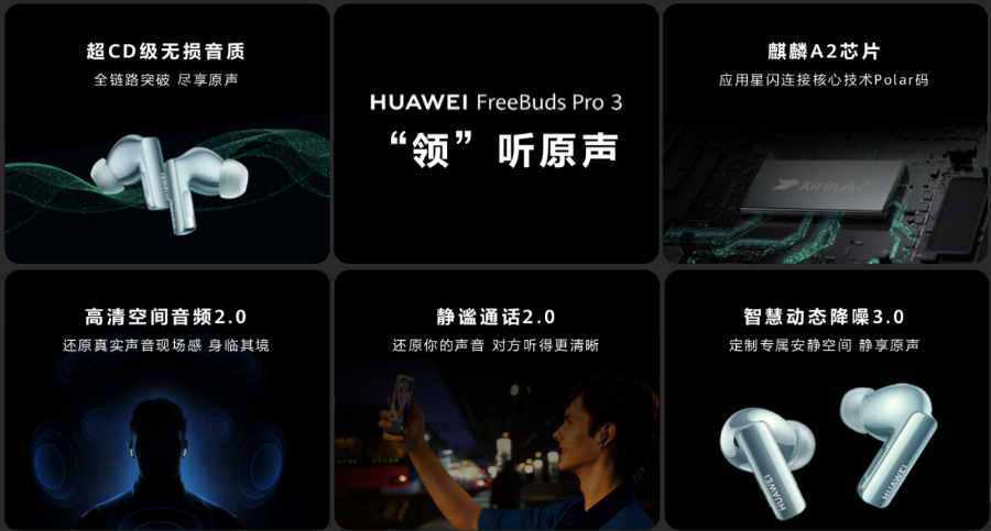 于今年下半年发布的华为FreeBuds Pro 3一经面世就收到大量关注,其内置了一颗全球首款支持星闪连接核心技术(Polar码技术)的音频芯片——麒麟A2,同时搭载自研L2HC 3.0协议,带来首发1.5Mbps无损音频传输,能够实现超CD级无损音质表现。麒麟A2芯片具备传输快、功耗低、高性能、高集成等特点,在全新芯片强大的算支持下,不仅耳机的音质表现迎来大幅升级,还带来了全新静谧通话2.0及智慧动态降噪3.0,将TWS耳机降噪能力也推向了新高度。