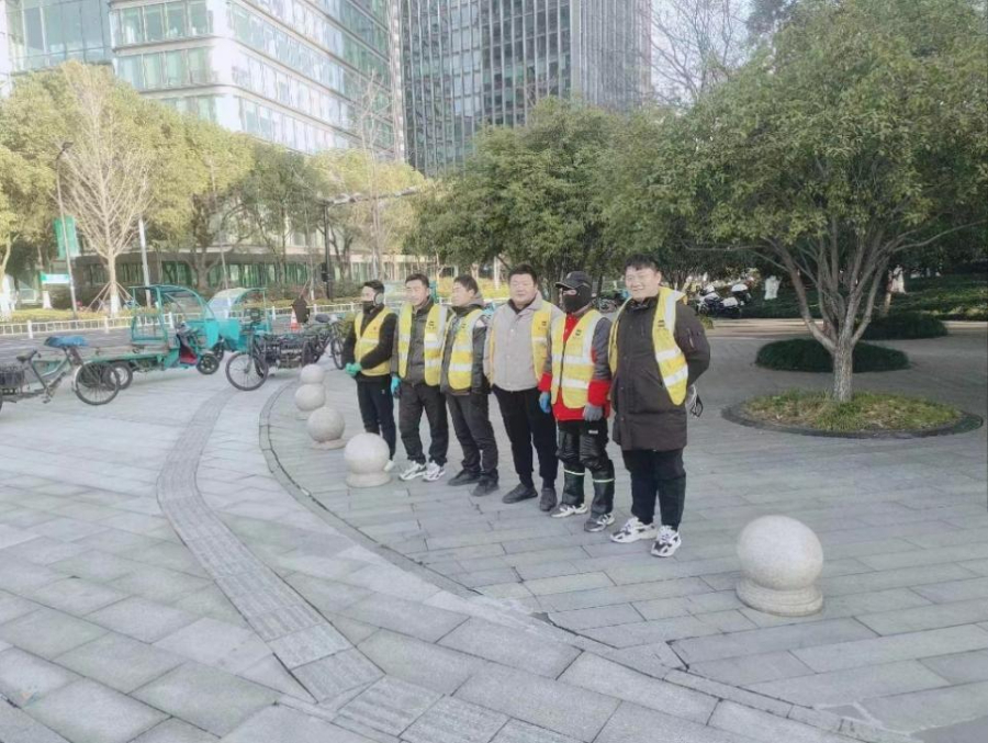 单车运维员在黄龙体育中心周边开展保障工作。摄影 刘飞