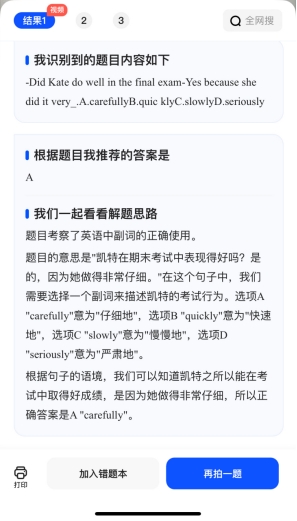 目前,夸克“AI学习助手”率先上线在部分搜索英语内容的场景中,覆盖选择题、填空题、阅读题等常考题型,用户可以通过拍照搜索的方式进行体验。后续还会加入数学等主流学科,让AI全面深入到学习场景的方方面面。