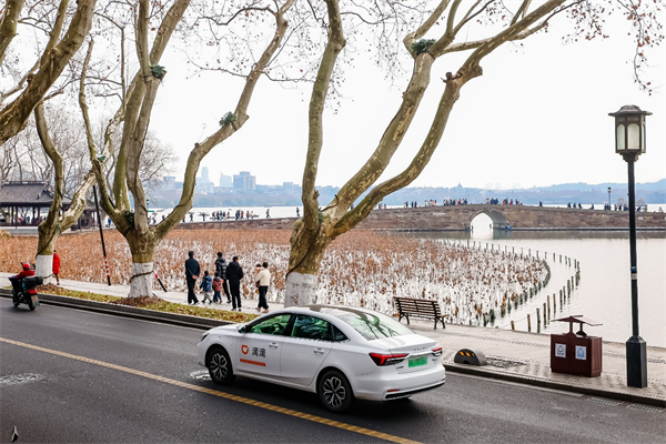 图为滴滴司机前往杭州西湖景区接驾