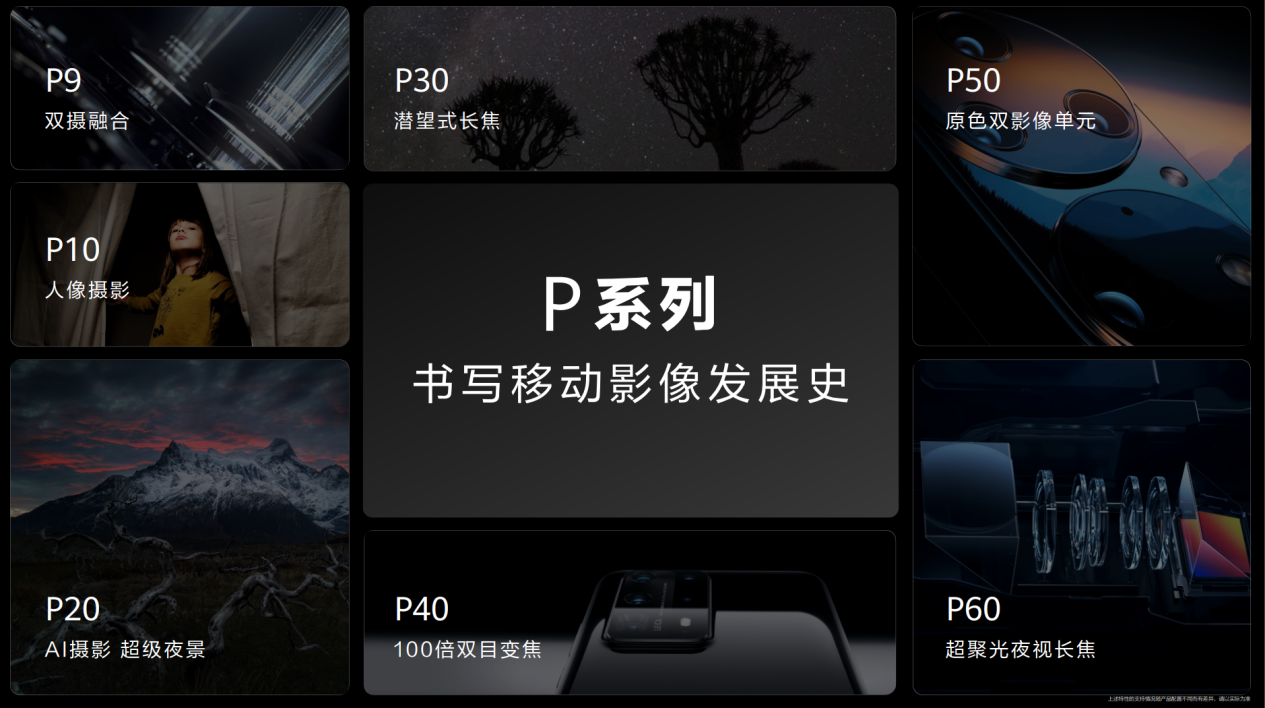 回顾P系列发展,从初代华为Ascend P1到如今的Pura 70,华为已然在高端产品序列站稳脚跟。尤其是影像,已然成为移动影像发展的风向标,例如P9系列开始与徕卡合作,推出了双摄像头系统,随后行业也快速跟进,多家品牌开启了与传统相机厂商的合作。影像大师P20系列引入了极光渐变色设计,集成了AI摄影和超大底摄像头,走红行业。P40系列引入了超大杯机型和支持10倍光变的镜头,引发了行业对超长焦追逐热潮。P50系列则是华为计算摄影的集大成者,首发华为影像品牌XMAGE ;P60系列首发XMAGE超聚光夜视长焦带来。过往十二载,P系列不断突破移动影像极限,累积销量突破1亿台,已经成为消费者心中认可的顶级影像旗舰手机之一。