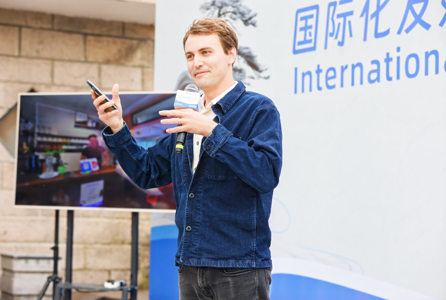 在“国际化友好景区”共建计划启动仪式上,来自美国的卓文在黄山开餐厅,在会上他分享了使用支付宝在中国生活和做生意的经历,并推荐黄山导览翻译服务。
