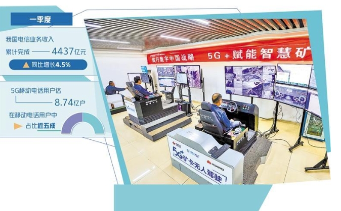今年一季度,我国电信业务收入累计完成4437亿元,同比增长4.5%。5G移动电话用户达8.74亿户,在移动电话用户中占比近五成;5G基站总数达364.7万个,占移动基站总数的30.6%。云计算等新兴业务拉动作用加大,5G、千兆光网等新型基础设施建设不断推进。