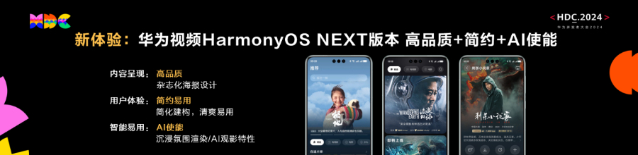 在HDC现场的鸿蒙原生应用展区,汇聚超过100款头部APP创新打样,打造26个创新场景展点,为广大开发者、伙伴及消费者带来焕然一新的体验。其中HarmonyOS NEXT版本下的华为视频也为现场参观者带来了不小的创新震撼。