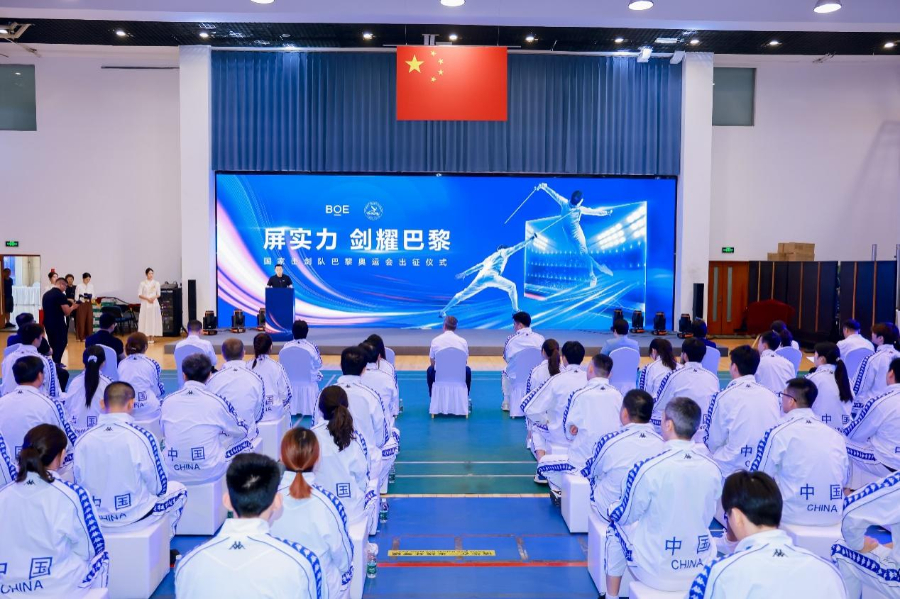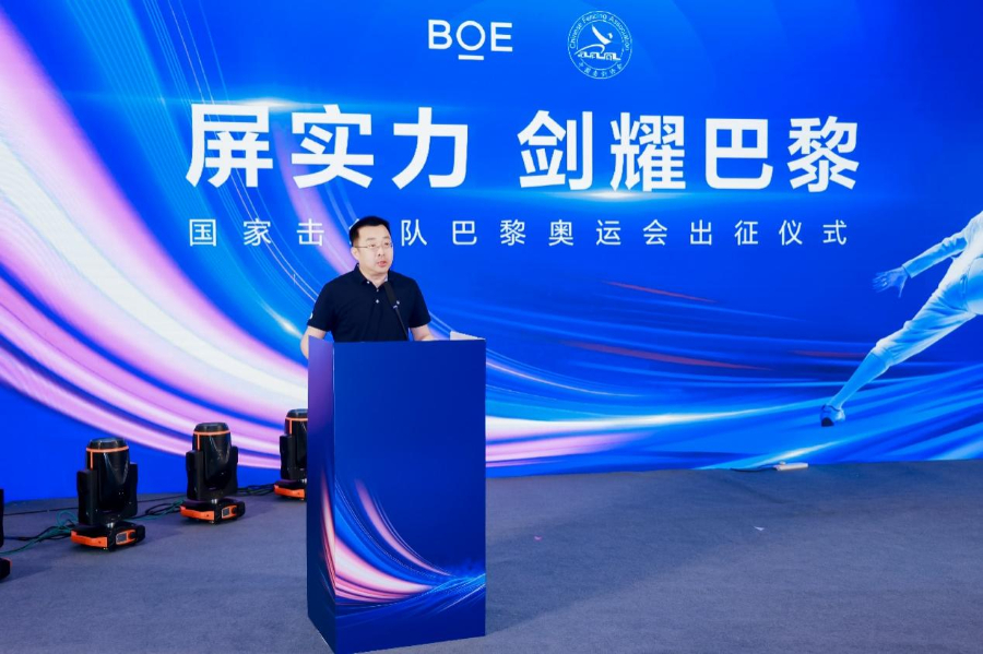 7月9日,BOE(京东方)携手中国击剑协会联合举办“屏实力 剑耀巴黎”中国国家击剑队出征仪式,作为中国国家击剑队首席战略合作伙伴,为即将奔赴赛场的体育健儿加油助威并送上祝福。