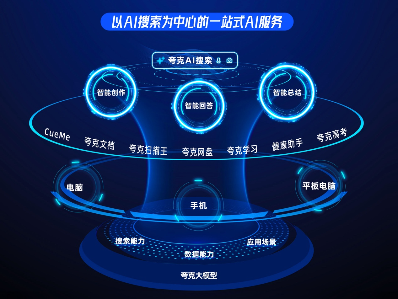 站在AI时代,夸克以全新的视角去看待产品和需求。夸克7.0版以AI搜索为中心,不断延展功能场景和服务能力,面向用户信息检索、生成、处理的全域、多元需求,一体化设计产品,一站式提供AI服务。
