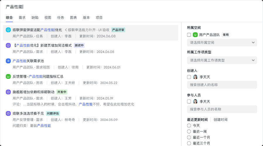 除了复杂项目管理能力的迭代,在用户体验上飞书项目也作出了提升,比如最新升级的综合搜索能力让信息准确率提升了40%,帮助员工更快找到想要的项目信息;在项目新建中新增的简洁模式让建单效率提升了35%;而通过持续优化产品性能,新版的飞书项目关键页面访问速度则提升了140%。