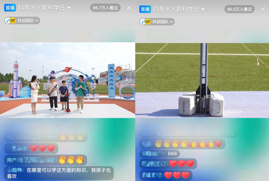 8月26日,暑期科普活动“抖音水火箭科学日”表演赛落幕,来自全国各地的青少年和科技爱好者汇聚北京亦庄,成功发射多枚“自制火箭”,吸引了239万网友线上观看直播。