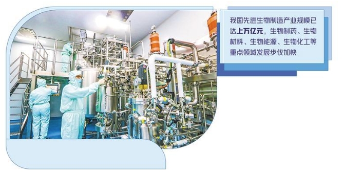 2024年《政府工作报告》提出,“积极打造生物制造、商业航天、低空经济等新增长引擎”。赛迪研究院数据显示,当前,我国先进生物制造产业规模已达上万亿元,生物制药、生物材料、生物能源、生物化工、新型食品制造等重点领域发展步伐加快,发展潜力和空间很大。