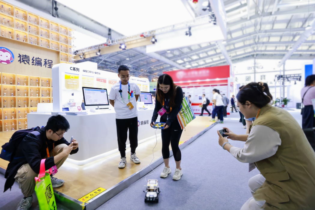 值得关注的是,猿编程在服贸会上首次打造“科技少年AI课堂”,以剧场式互动体验的形式,为观众们呈现了一场沉浸式科技教育盛宴,让观众们在寓教于乐的过程中感受前沿科技的脉搏。