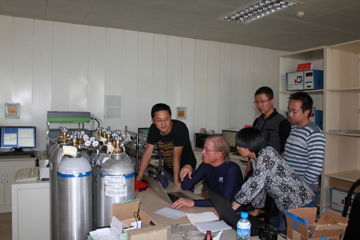 2011年11月,外国专家在瓦里关全球大气本底站与青海省气象局工作人员开展科学研究试验。青海省气象局供图