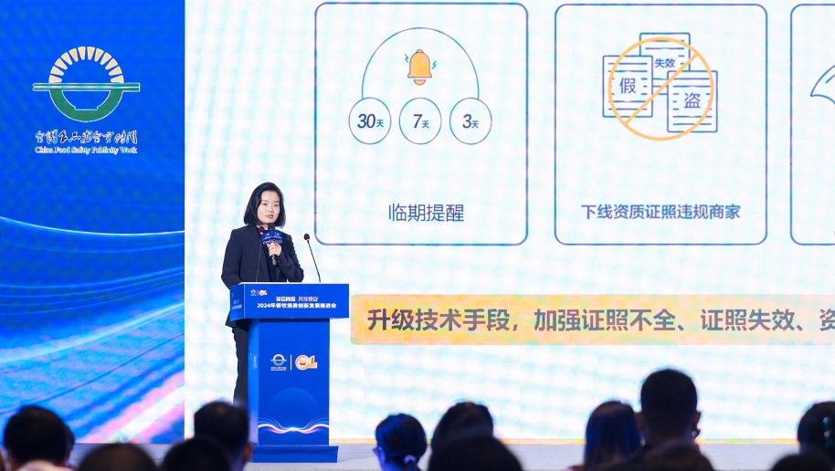 美团食品安全高级总监高蓓在会上介绍美团外卖在食品安全领域的战略规划及相关举措