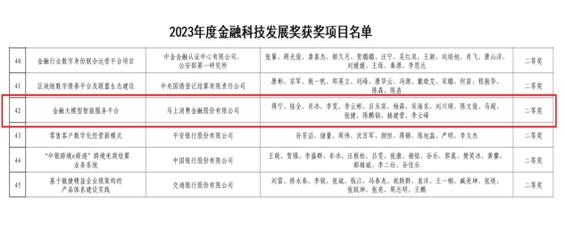 ▲ 马上消费“金融大模型智能服务平台”荣获2023年度金融科技发展奖二等奖
