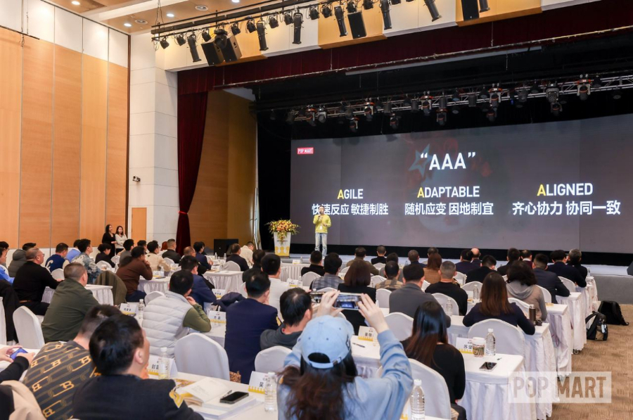 “过去两年,泡泡玛特的供应链正变得更敏捷、更协同、更因地制宜。”大会现场,供应链中心总裁袁俊杰围绕供应链的3A原则(敏捷性agile、随机应变adaptable、协同性aligned)进行了主题分享。