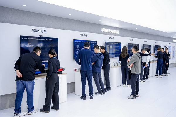 在政企解决方案方面,华为展示了量子密话定制终端等电信合作成果,以及针对政务、医疗等多行业场景数字化转型的解决方案。其中,华为擎云携手合作伙伴打造的量子云会议方案、智慧公务车等解决方案,更是为商用办公场景带来了数智化升级的新选择。