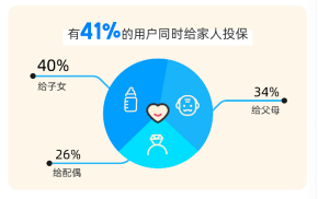 随着保障意识和家庭观念的提升,国内健康险家庭化配置的趋势也在兴起。蚂蚁保数据显示,41%的健康险在保用户会同时给家人投保健康险,其中,40%给子女投保、34%给父母投保、26%给配偶投保。