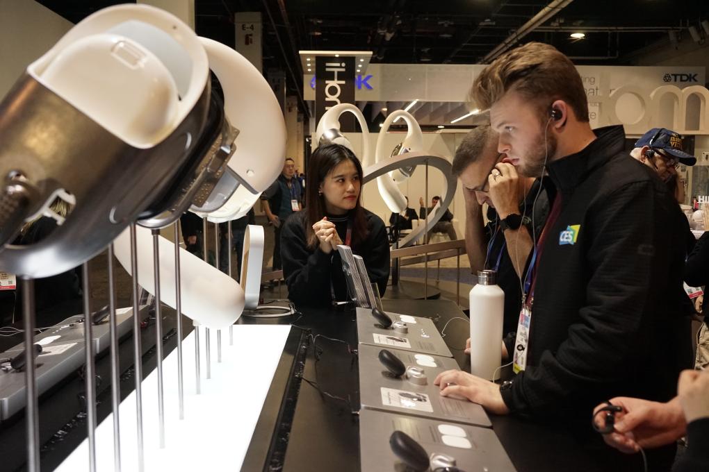 图为2025年1月7日,人们在美国拉斯维加斯消费电子展韶音科技展区体验产品。新华社发(曾慧摄)