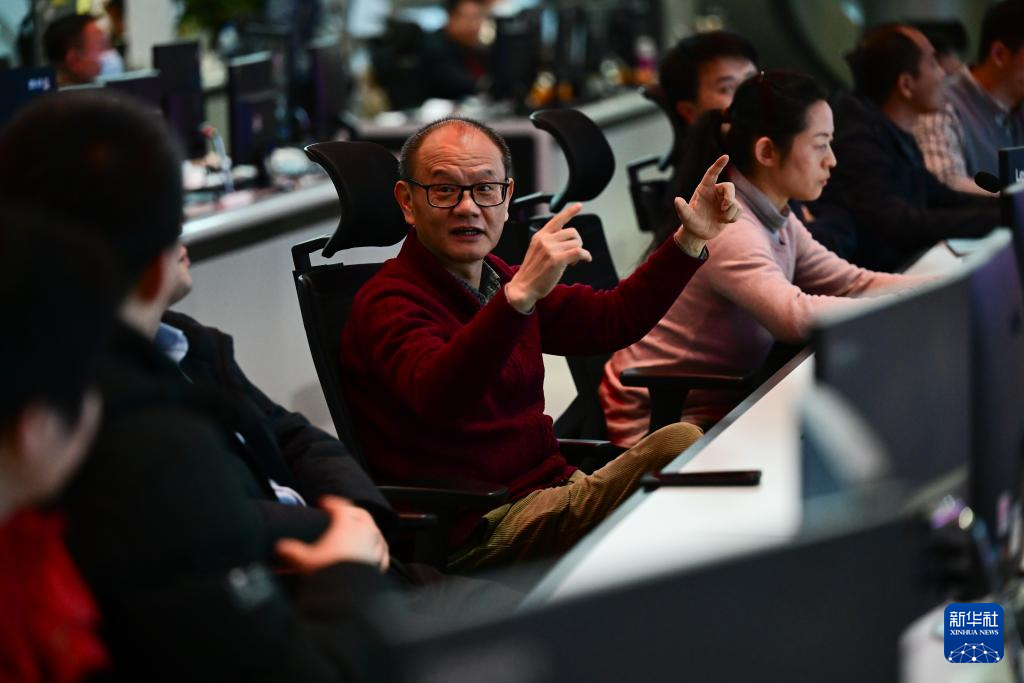 1月18日,在全超导托卡马克核聚变实验装置(EAST)控制大厅,EAST物理实验总负责人龚先祖在一次冲击实验中与团队成员交流。新华社记者 张端 摄
