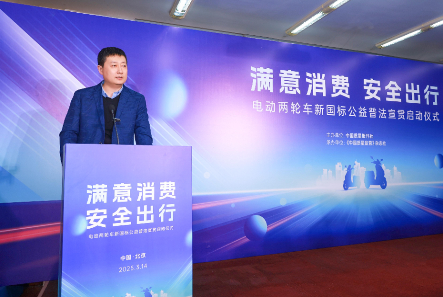 3月14日,“满意消费 安全出行——电动两轮车新国标公益普法宣贯启动仪式”在北京举行。活动现场,“满意消费 安全出行——电动两轮车新国标公益普法宣贯”活动正式启动,活动旨在深化新国标宣贯,以标准升级推动产业创新,以普法宣传筑牢质量根基。加快推动新国标落地实践,致力于为消费者营造放心、安全的消费环境。