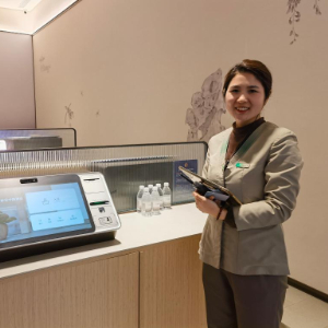 华住集团已在其部分酒店引入技术赋能的“新前台”。一方面,酒店对硬件和软件系统进行了同步升级,例如优化机器对身份证信息的读取速度、房卡吐出速度等;一方面,前台服务人员“走到台前”,手持平板电脑在酒店大堂迎接住客。这一举措推动人效比提升了40%左右。