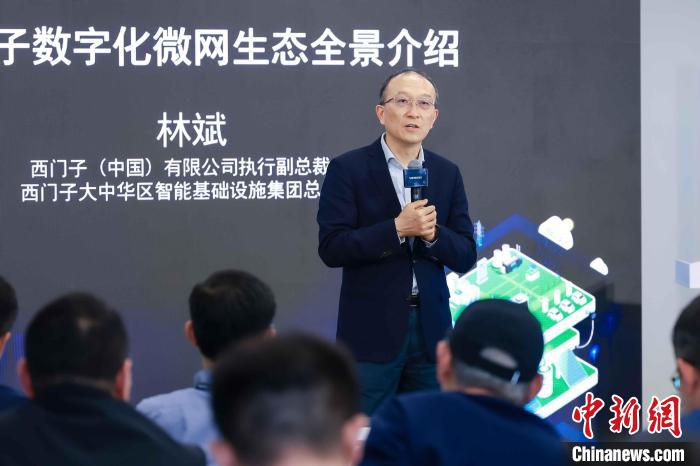 21日,西门子在西门子数控(南京)有限公司(SNC)举办数字化微网生态发布会,西门子(中国)有限公司执行副总裁林斌在会上发言。(主办方供图)