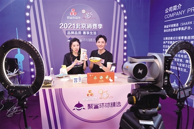 4月28日,“2021北京消费季”在首钢园正式启动,现场主播正在进行直播带货。 资料图片/新京报记者 王飞 摄
