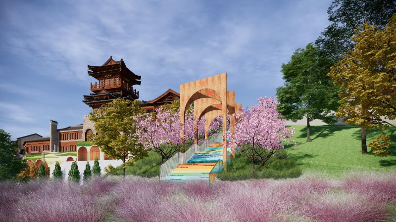 走过红街,圣地广场通往延湖的彩虹步道千万不要错过。这里除了有按窑洞风格设计的时光之门,还有七彩的台阶,更有在每一级台阶上精心铭刻的关于一些重大历史事件的记录。