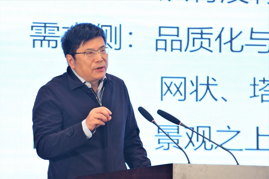 图为中国旅游景区协会开发运营委员会主任委员林峰在峰会上作专题演讲。经济日报-中国经济网记者裴小阁摄影