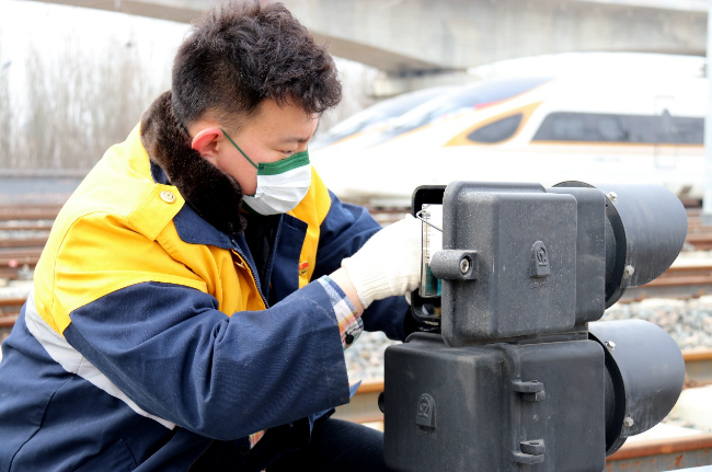 北京电务段职工对信号设备进行检查整治。