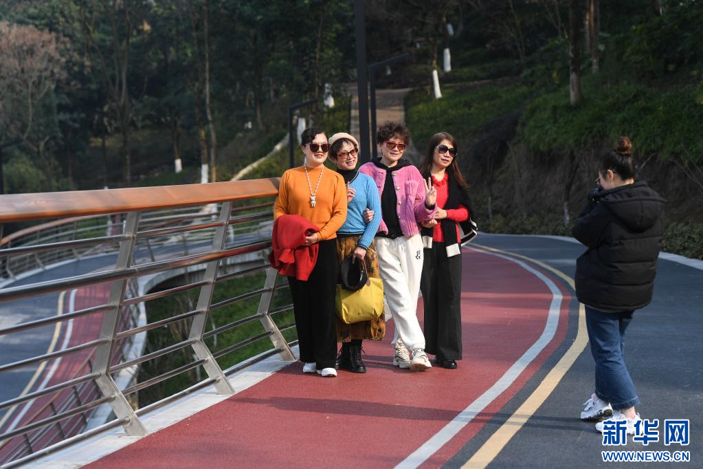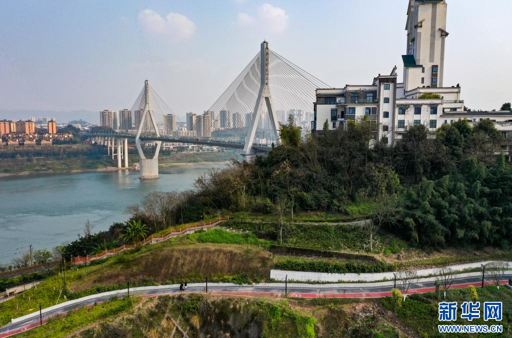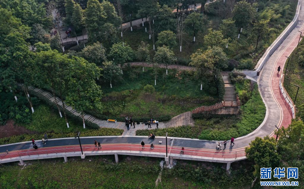 这是2月15日拍摄的重钢崖线山城步道(无人机照片)。