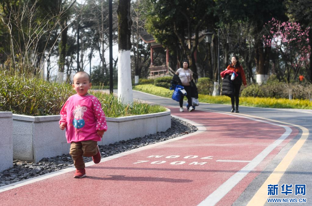 2月15日,小朋友在重钢崖线山城步道玩耍。