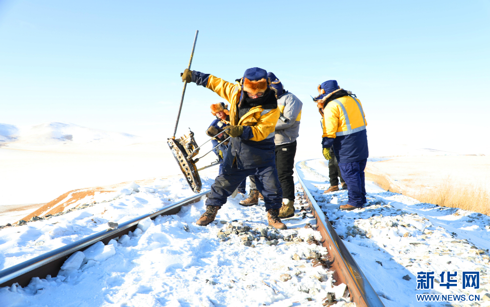 1月12日,地处锡林郭勒草原的最低气温达到零下25℃,“白毛风”肆虐。中国铁路沈阳局集团有限公司通辽工务段沙尔塔拉线路车间的干部职工正在霍白线61公里处理线路冻害。