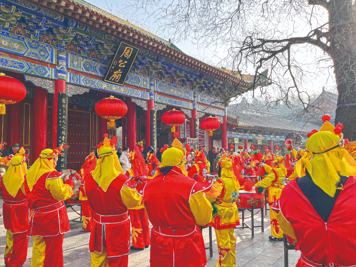 当地群众在周公庙景区进行非遗演出。受访单位供图