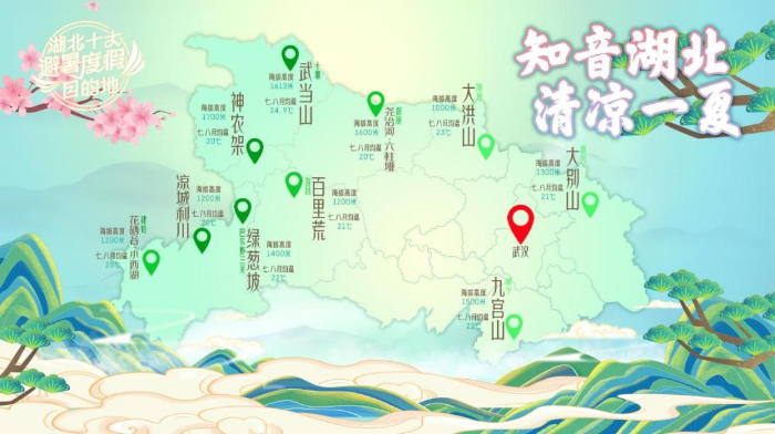 今年暑期,“避暑消夏”是游客首要考量因素之一。面对广大市民游客的热情与期待,自7月以来,湖北省启动“知音湖北 清凉一夏”活动,评选并打造出十大避暑度假旅游目的地,神农架、凉城利川、武当山、咸宁九宫山、宜昌百里荒、黄冈大别山、巴东野三关·绿葱坡、保康尧治河·六柱垭、建始花硒谷、随州大洪山成为湖北夏季避暑旅游热点。
