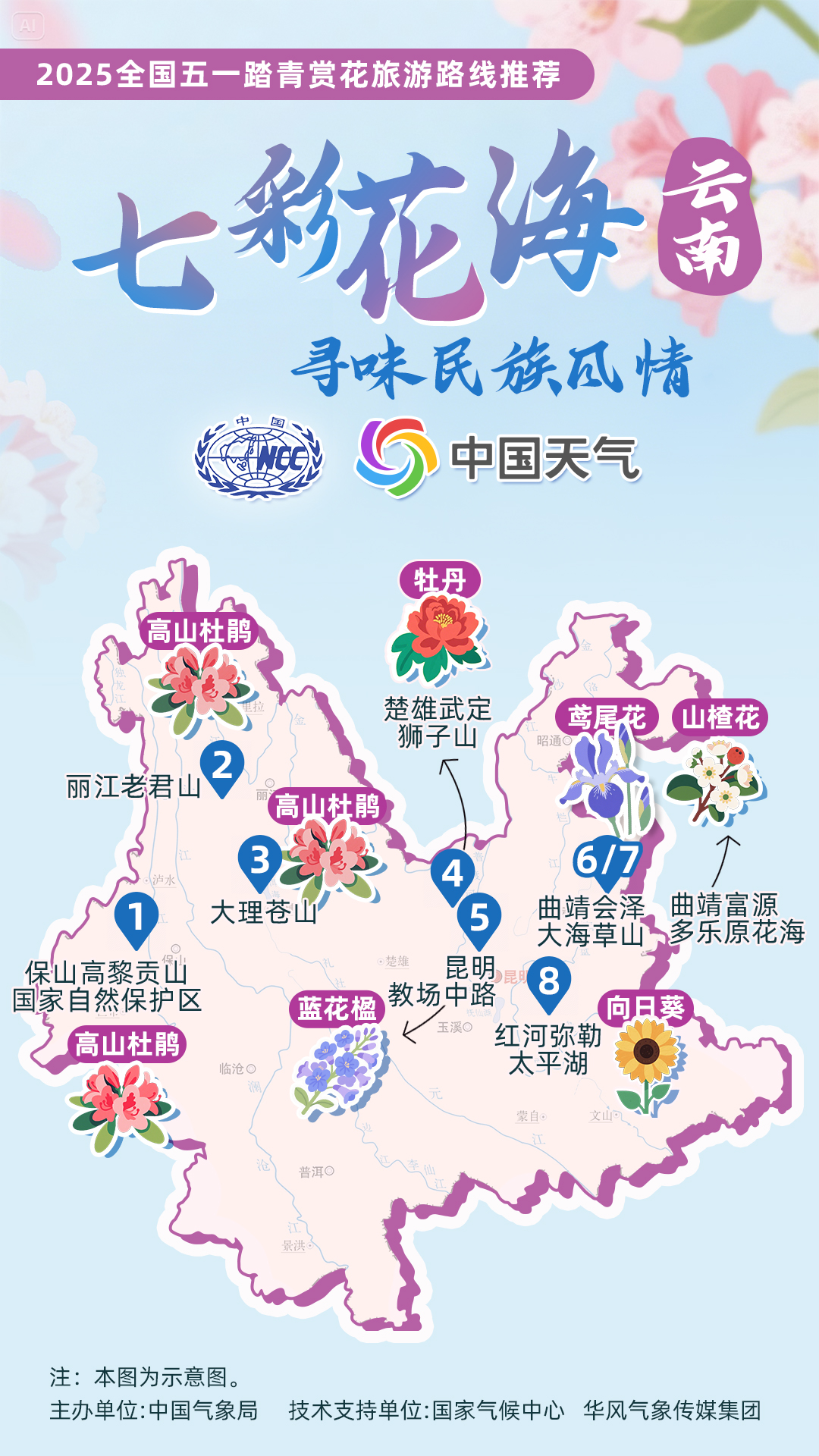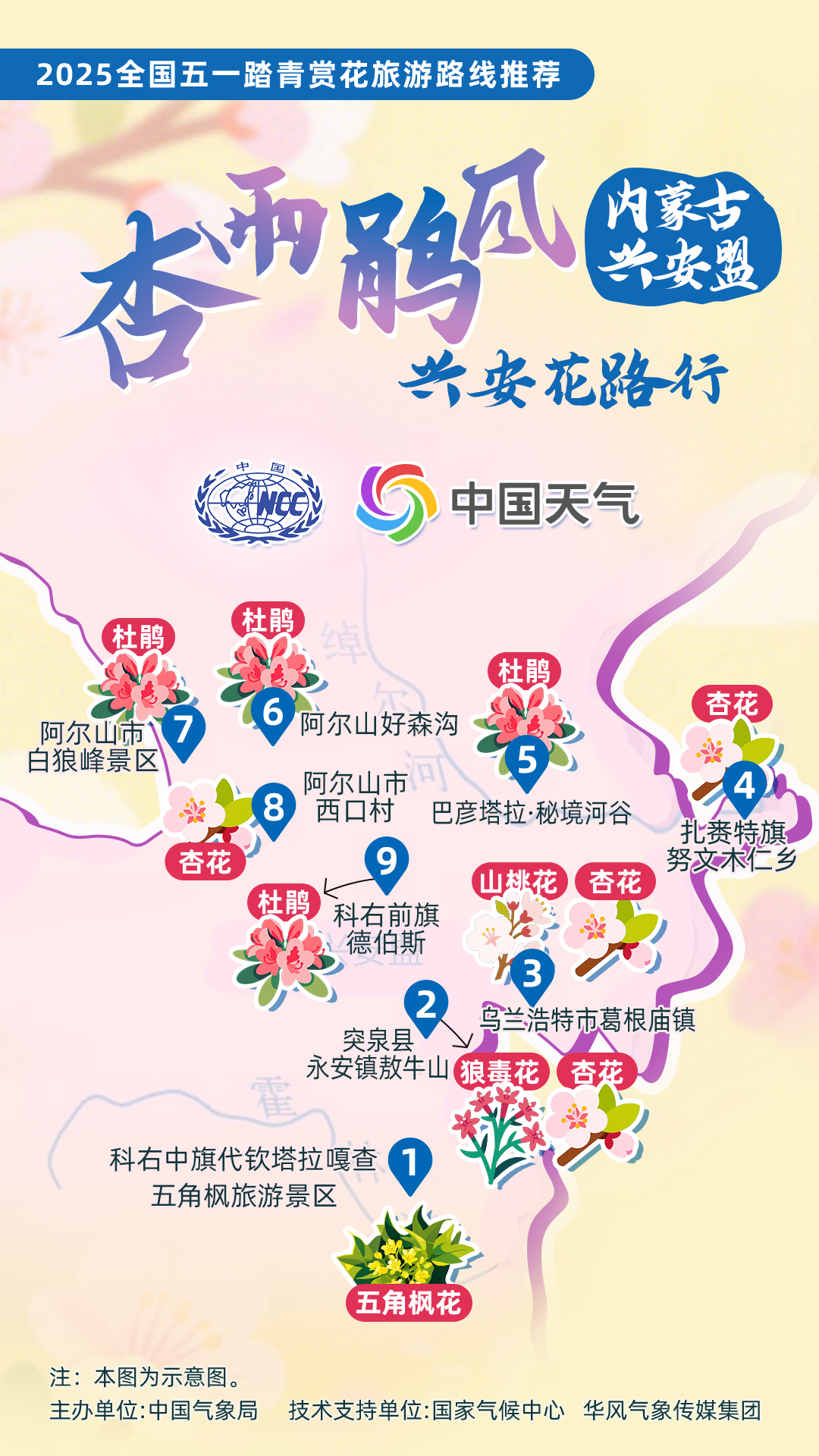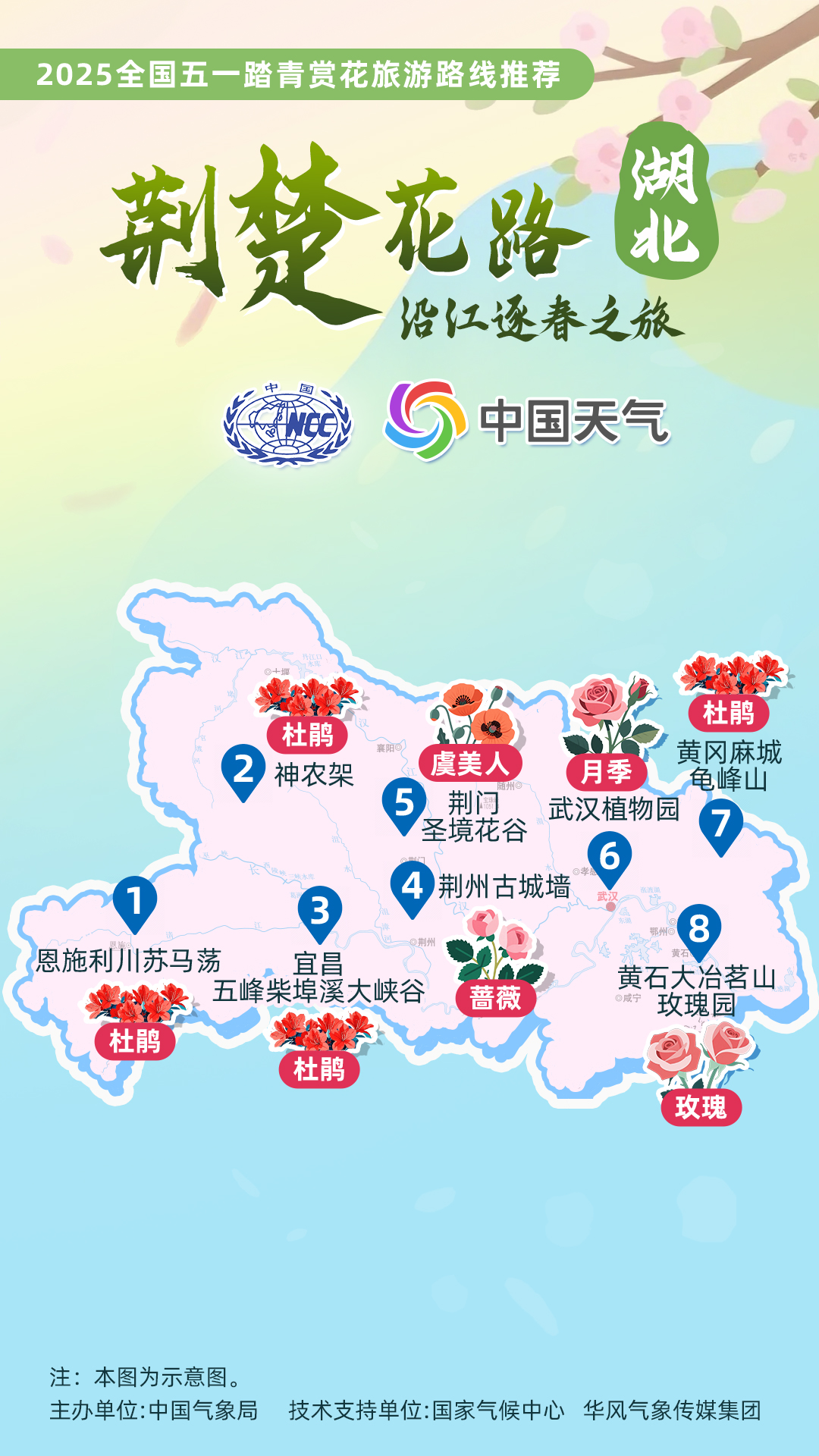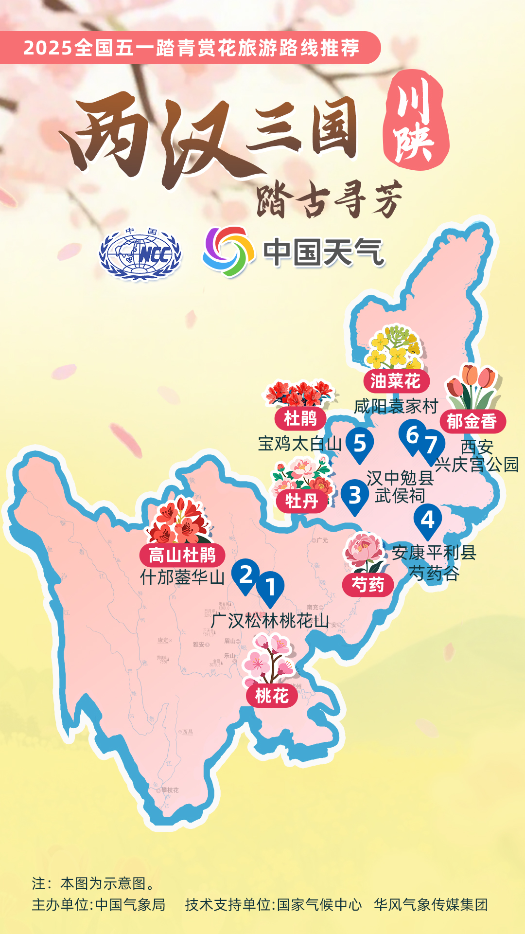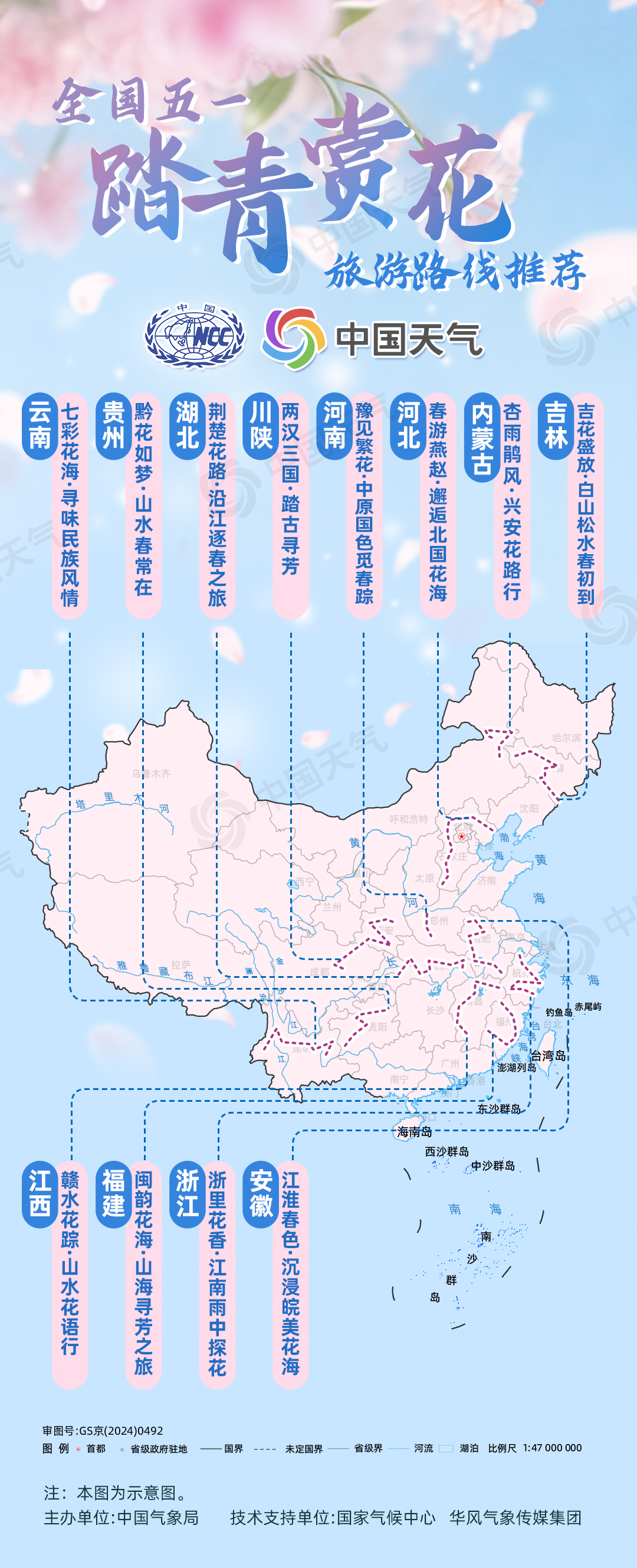 4 月 23 日,中国气象局参与文化和旅游部2025年全国“五一”文化和旅游消费周活动,推出 12 条 “五一踏青赏花旅游路线”。每一条路线,都串联起春日里最动人的景致。在即将到来的五一假期,不妨从这些路线中挑选你心仪的一条,趁着春光正好,开启一场与春日中国的浪漫邂逅。