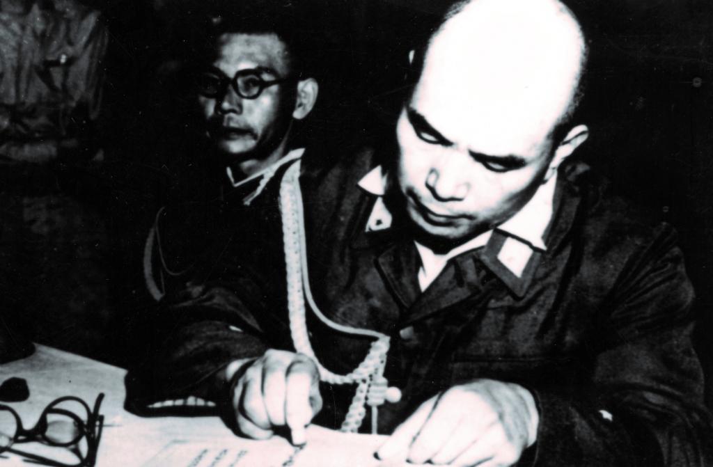 这是今井武夫在投降备忘录上签字盖章。(照片现收藏于中国人民抗日战争胜利受降纪念馆)