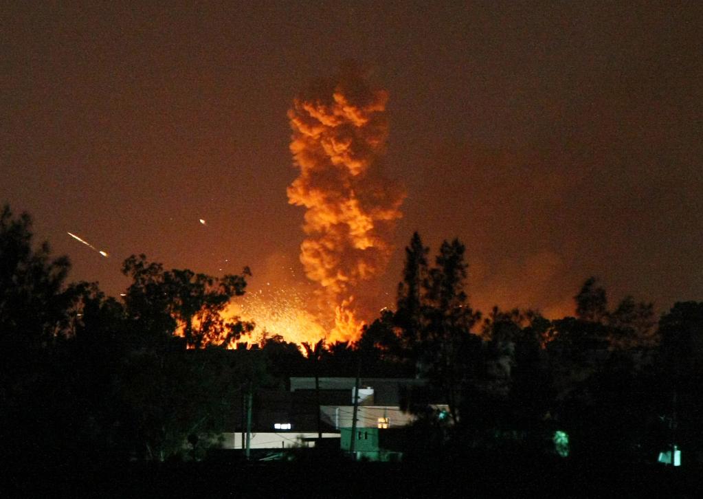 2011年8月9日,利比亚首都的黎波里遭到北约空袭后升起浓烟。新华社发(哈姆扎·图尔基亚摄)