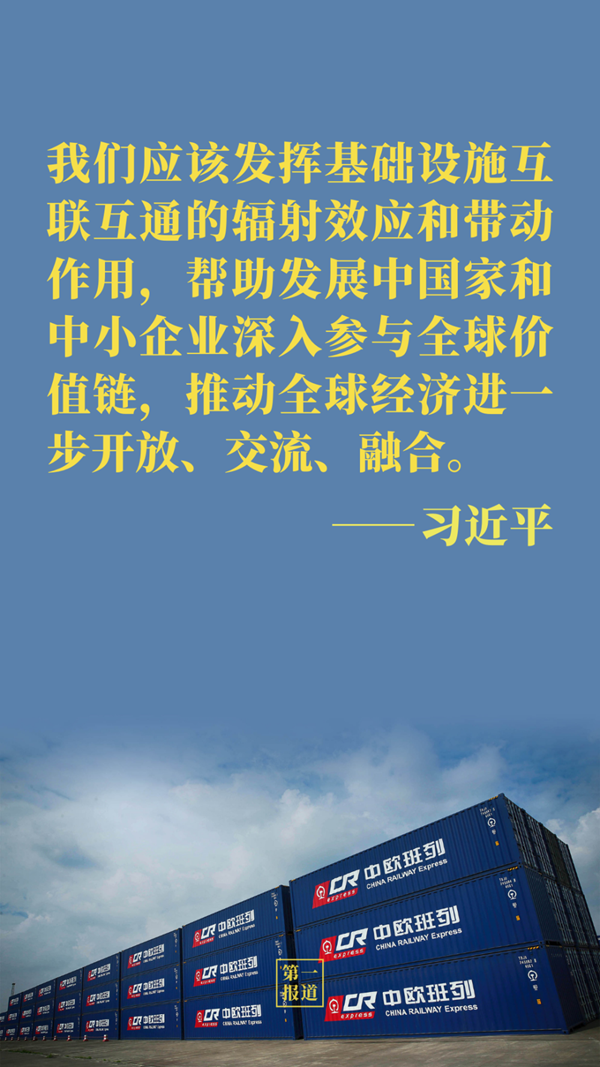 中欧班列的成功充分说明,基础设施是互联互通的基石。建设高质量、可持续、抗风险、价格合理、包容可及的基础设施,有利于各国充分发挥资源禀赋,更好融入全球供应链、产业链、价值链。