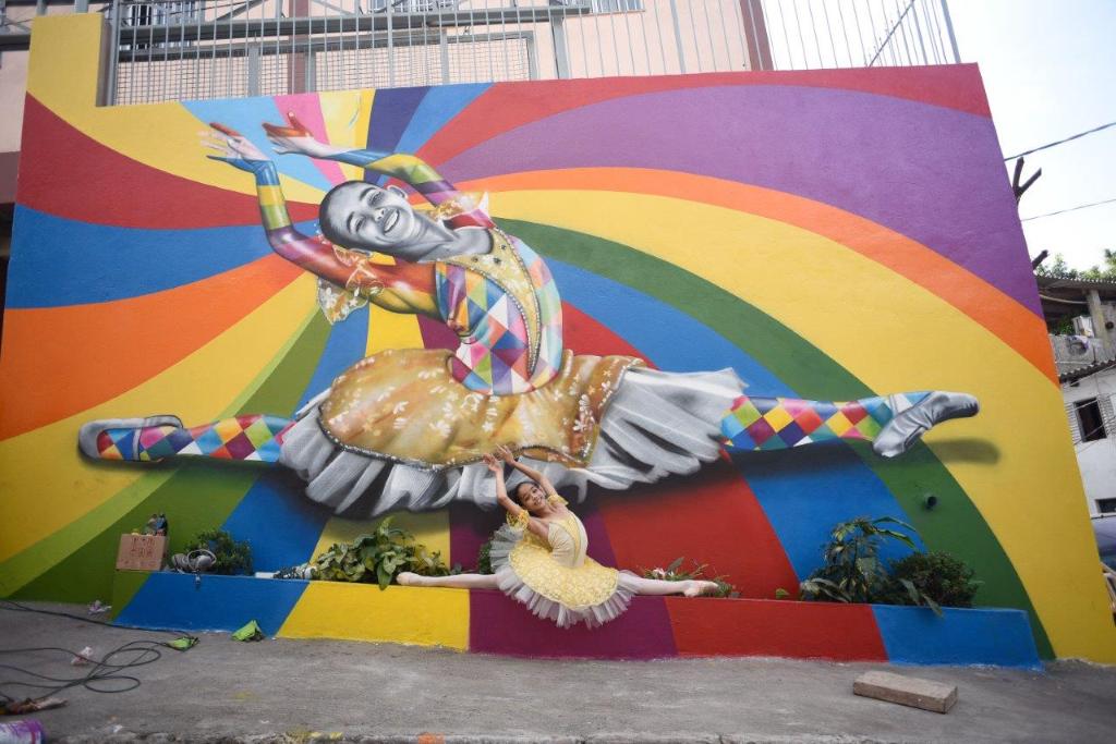 玛利亚·丹妮埃拉在以自己的舞姿为主题的壁画前起舞。新华社发(马特乌斯·博诺米摄)
