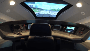 观众可以进入等比例的驾驶舱,模拟驾驶“复兴号”高铁,体验从北京出发,途经上海、阿布扎比抵达迪拜世博园区的虚拟路线。