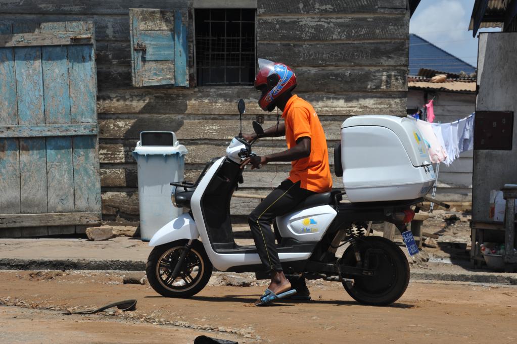 加纳人约瑟夫·科利绍是非洲本土电商Jumia的一名快递小哥,每天要在烈日下完成数十份订单。六个月前,公司给他派发了一辆崭新的“中国造”电动摩托车,他觉得自己的工作因此轻松不少。