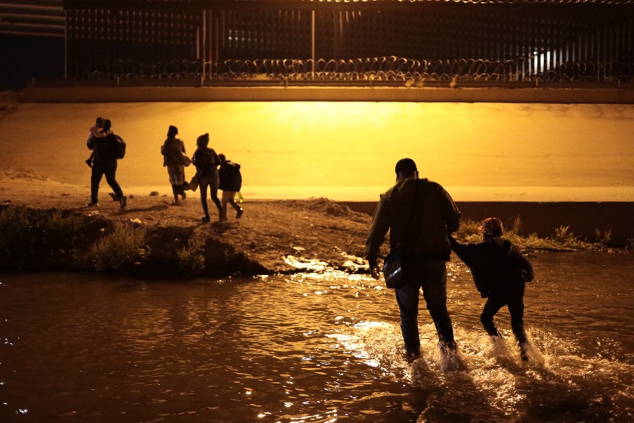 这是3月30日在墨西哥边境城市华雷斯一侧拍摄的海地移民穿过布拉沃河从墨西哥试图进入美国。(新华社发,佩纳多摄)